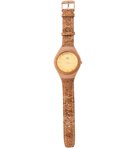 42MM DIAMETER HIGHT IMPACT HIGHT DENSITYÂ POLYCARBONATE CASE TOP RING NATURAL ITALIAN CORK SOLID STAINLESS STEEL CASEBACK WITH 4 SCREW CASE THICKNESS ONLY 8.5 MM SUPER SLIM PRECISION JAPANESE SLIM QUARTZ MOVEMENTÂ MINERAL GLASS DIAL WITH APPLIQUE INDEX SOFT MATCHING AND INTEGRATE CORK STRAPÂ WHIT INSERT 3ATM WATER RESISTANT 30 METER 100 FEET