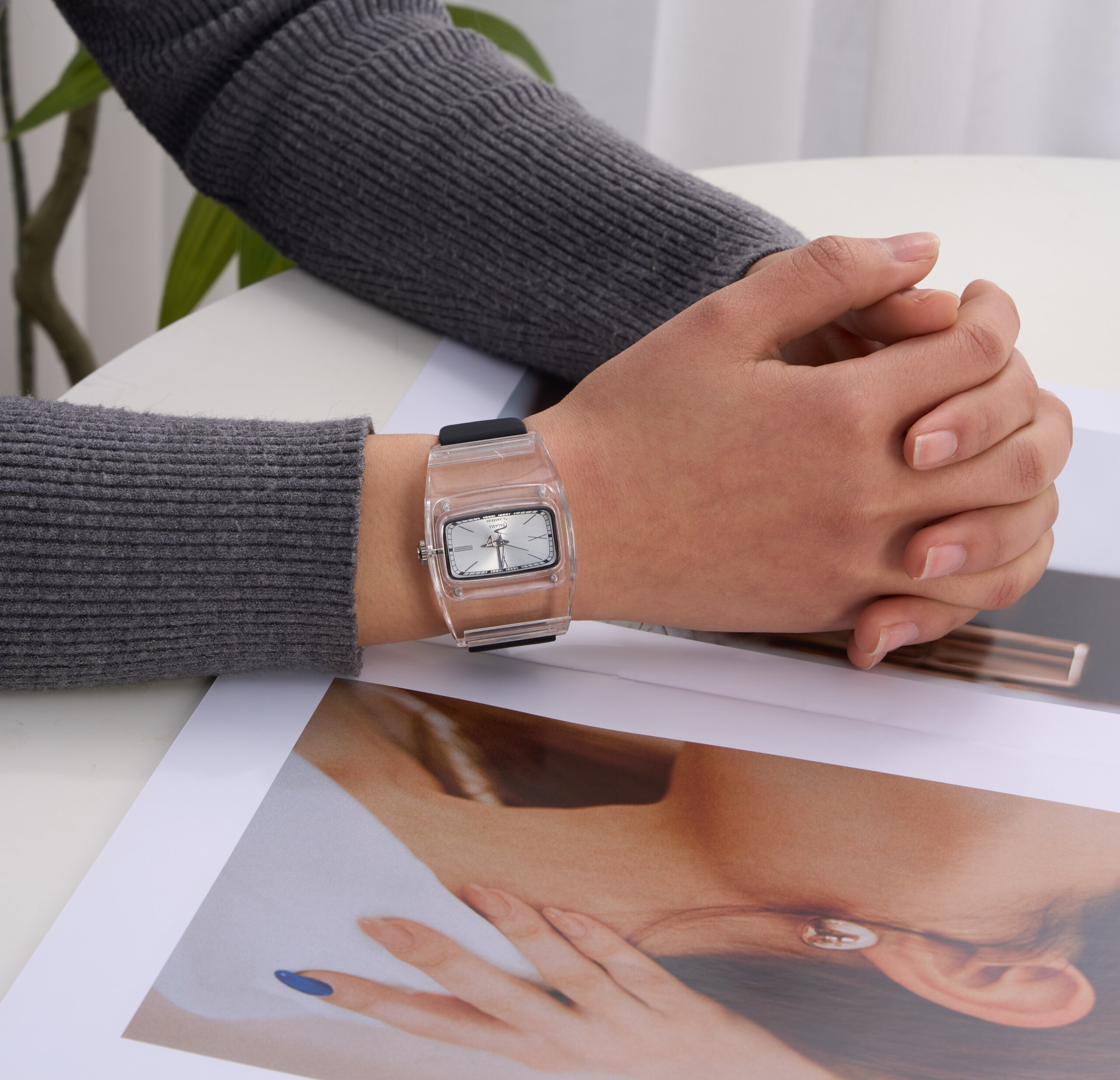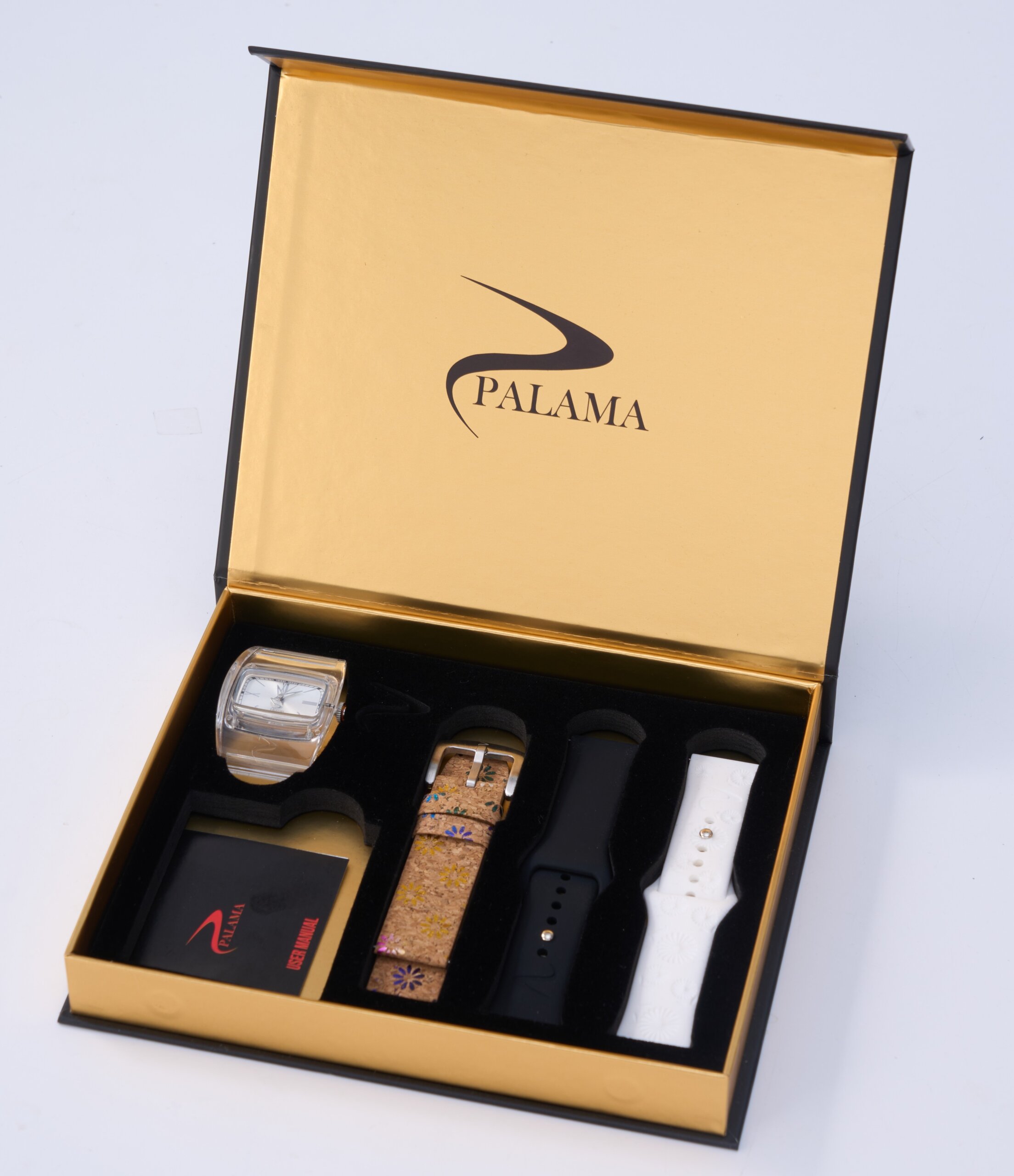 POLYCARBONATE CASE POLYCARBONATE CONNECTOR CASE POLYCARBONATE CASEBACK WITH 4 SCREW THICKNESS ONLY 8.5 MM SUPER CURVE PRECISION JAPANESE SLIM QUARTZ MOVEMENT MINERAL GLASS DIAL WITH EMBOSS INDEX 2 SOFT MATCHING AND INTEGRATE LEATHER STRAP 1 SOFT CORK STRAP WITH FLOWER SPECIAL PRINT 3ATM WATER RESISTANT 30 METER 100 FEET